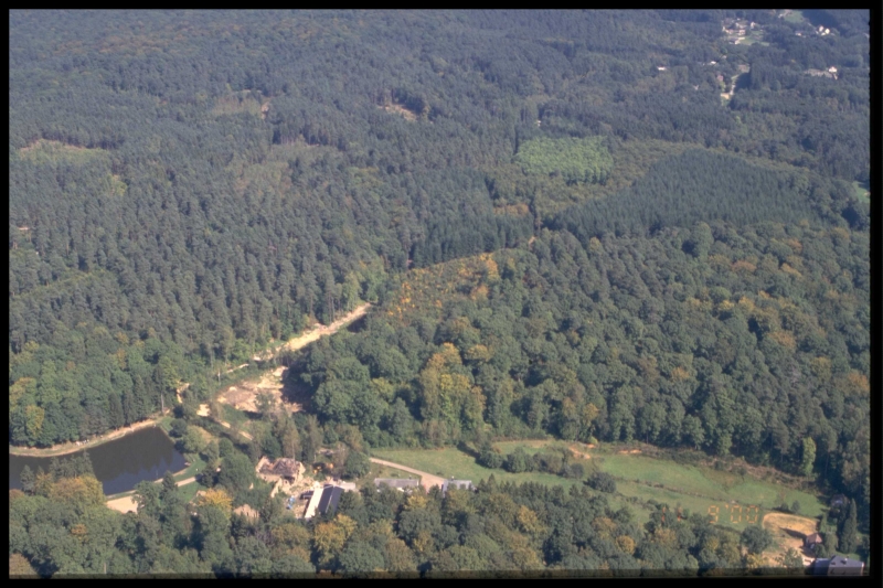 En amont de ce site, le ruisseau glisse sur une dalle de grès, noire, luissante et lisse. Ses berges montrent Sphagnum sp., Polytrichum commune, Carex remota, C. echinata, Valeriana dioica, Equisetum hyemale, Blechnum spicant, Molinia caerulea,...