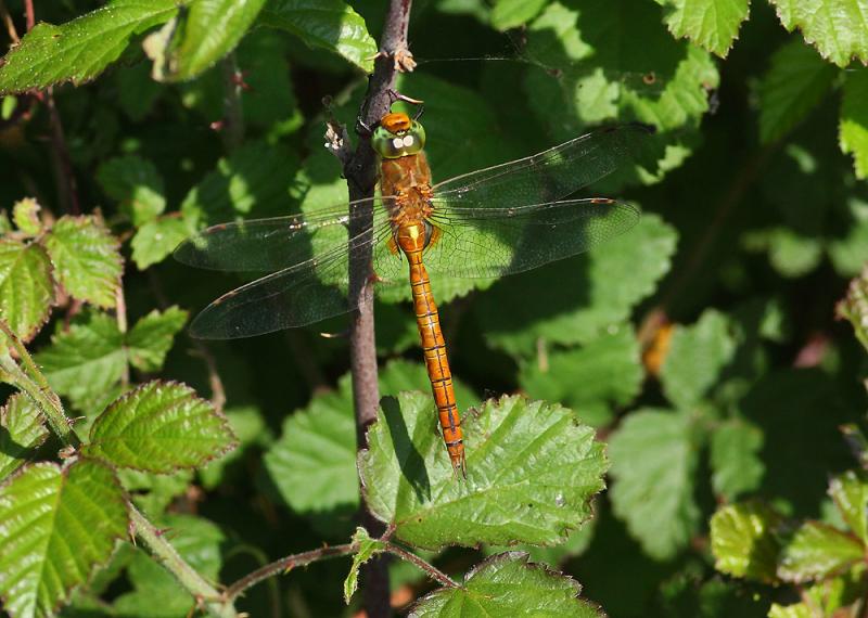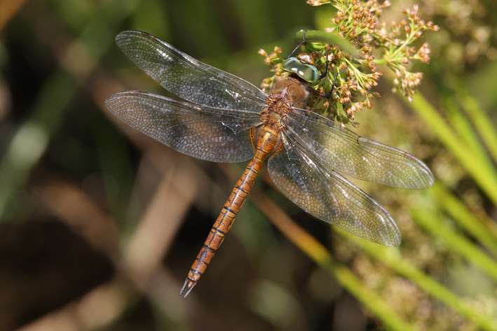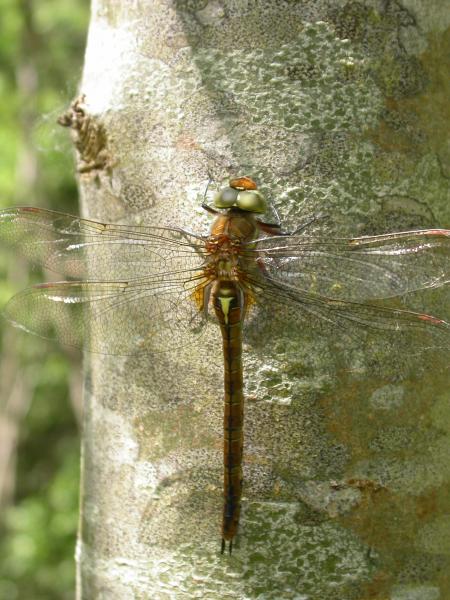 Grande Aeschne de couleur brune aux yeux verts possédant un triangle jaune sur le deuxième segment abdominal et une tache jaune à la base de l'aile postérieure. En Europe, sa distribution s'étend de la région méditerranéenne à l'Europe centrale. L'espèce recherche des plans d'eau avec une végétation rivulaire bien développée. Elle vole essentiellement du mois de mai à la mi-juillet.