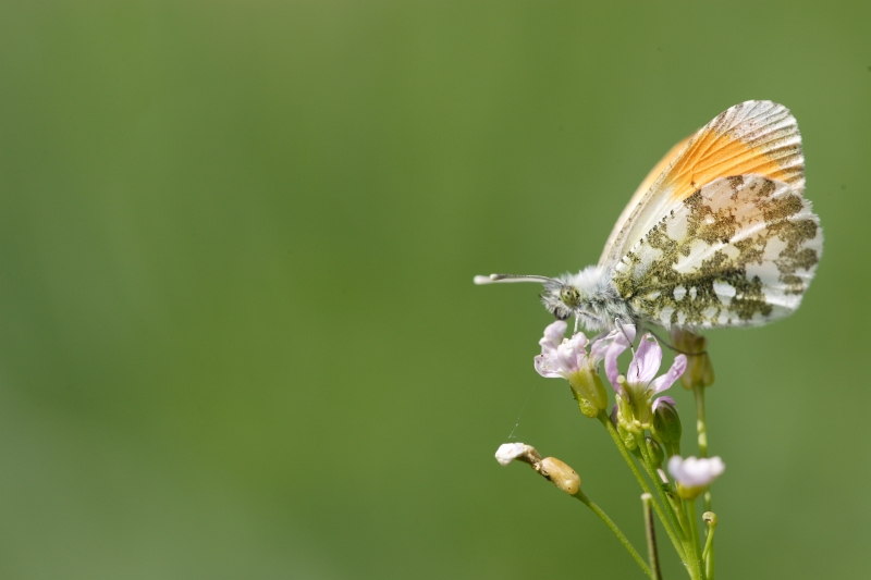 | Ecologie : | L'espèce fréquente les prairies humides, lisières, clairières ensoleillées, berges de ruisseaux, pelouses sèches calcaires, bords de route ... Les femelles pondent sur diverses Brassicacées dont Cardamine pratensis (w)*, Alliaria petiolata (w), Cardaminopsis arenosa (w), Arabis hirsuta (w), Arabis glabra (w), Arabis pauciflora (w), Lunaria annua (w), Barbarea vulgaris (w), Lepidium campestre (w), Rorippa sylvestris (w) , Biscutella laevigata, Cardamine hirsuta . Les oeufs sont pondus isolément sur les pédoncules floraux. Cycle de vie : 1 génération. L'espèce vole surtout d'avril à mi-juin, avec un pic en fin avril et mai. Des observations sont exceptionnellement possibles en août-septembre. Dates extrêmes : 5/3 –5/9. C'est la chrysalide qui passe l'hiver. * les plantes sur lesquelles ont été observées des pontes en Wallonie sont suivies d'un (w) |