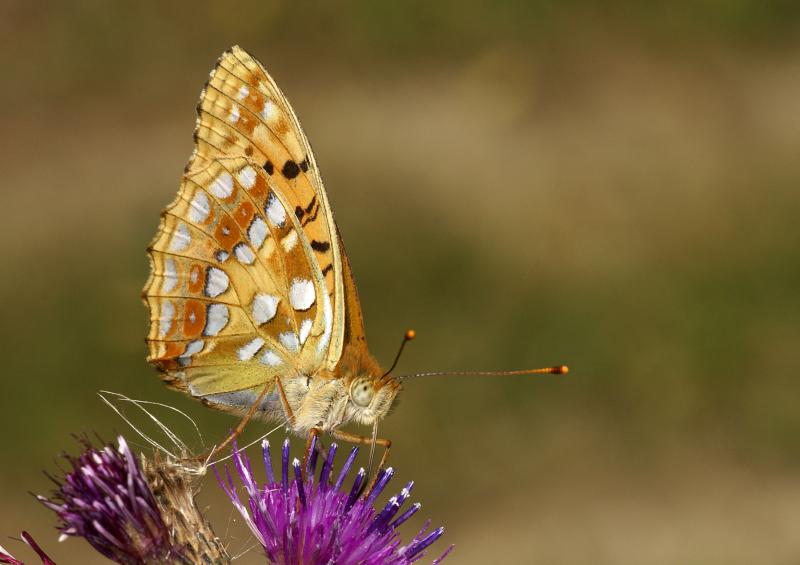 | Ecologie : | L'espèce fréquente des prairies bocagères fleuries en lisière de bois feuillus clairs, les clairières ensoleillées, les bois clairs, les prés maigres, les pelouses sèches, les versants chauds... Ses plantes-hôtes sont Viola hirta (ponte observée en Wallonie), Viola canina, Viola riviniana, Viola odorata, Viola reichenbachiana, Viola tricolor, Viola palustris. Des oeufs isolés sont pondus sur ou à côté de violettes. Cycle de vie : 1 génération. Elle vole surtout de juin à août, avec un pic en juillet-début août, et hiverne au stade œuf (où la chenille est déjà formée). |