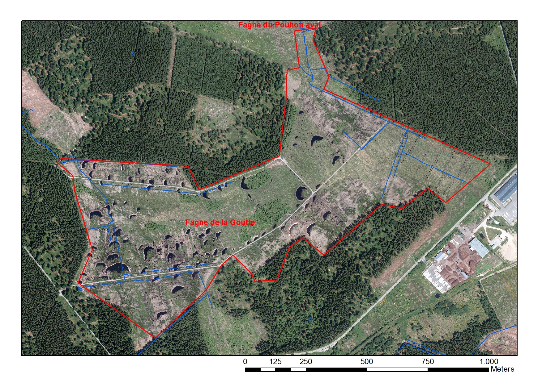 - Travaux de restauration hydrologique : mares, digues minérales, neutralisation des drains, pose de tuyaux pour le passage de l'eau sous le chemin empierré;
