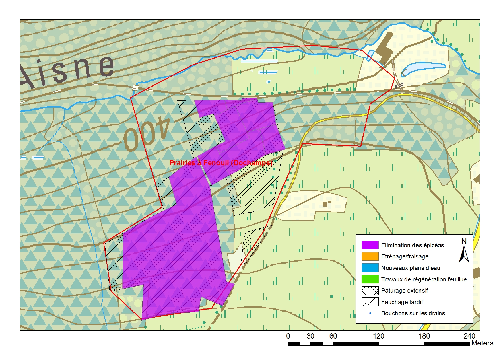 Les travaux de restauration entrepris sur ce site visaient essentiellement à restaurer la prairie submontagnarde de fauche présente à l'origine :