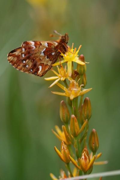 | Ecologie : | L'espèce fréquente les tourbières acides à sphaignes, hautes ou de transition (flottantes), faiblement ou modérément boisées, où croît la canneberge (Vaccinium oxycoccos) . Il s'agit de la principale plante-hôte des chenilles. Des pontes auraient également déjà été observées sur Andromeda polifolia, Viola palustris, Persicaria bistorta. Les oeufs sont pondus isolément sur les feuilles ou les tiges de la plante-hôte ou sur d'autres plantes près du sol, de préférence sur les buttes denses de sphaignes. Pour le stade larvaire, les deux facteurs primordiaux sont l'abondance de la canneberge et la présence de buttes de sphaignes. Les chenilles évoluent en effet essentiellement sur et dans de telles buttes couverte de canneberge, dans lesquelles elles bénéficient d'une température stable autour de 12-14°C (voir notamment DUBOIS et TURLURE, 2016). La présence de ressources nectarifères abondantes (comaret, bruyère quaternée, cirse des marais, ...) et de lisières arbustives ou arborées en périphérie des sites apparaît nécessaire pour les imagos de l'espèce. Cycle de vie : L'espèce vole en 1 génération surtout de mi-juin à fin juillet, avec un pic en juillet, et hiverne au premier stade chenille. |