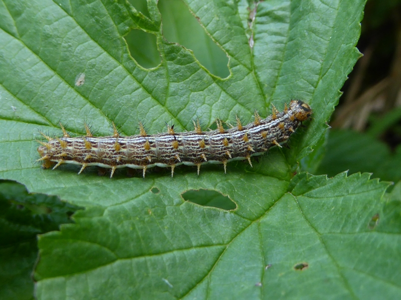 – Moitié basale du dessous des ailes postérieures jaune, moitié extérieure brun violacé avec rangée de points brun sombre
