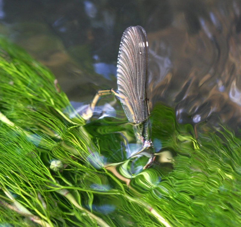 | Ecologie : | Le Calopteryx vierge est une espèce très exigeante quant à la qualité de l'eau et à la structure des rives. Il occupe les sections naturelles des cours d'eau caractérisés par une forte concentration d'oxygène dissous (7,5 mg/l), de nombreux méandres et des berges irrégulières peu garnies de plantes rivulaires. Sur les cours d'eau plus lents, il préfère les zones plus ombragées. La température estivale des cours d'eau occupés est comprise entre 13 et 18°C. La ponte s'effectue dans les plantes flottantes, en particulier la Renoncule aquatique, Ranunculus fluitans, dans le sud de la Belgique, ou dans les racines d'arbres le long des rives. Les mâles défendent des territoires bien délimités sur environ cinq mètres de rive ensoleillée. Des individus errants ont été observés jusqu'à une dizaine de kilomètres des populations les plus proches. Anny Anselin in Goffart et al. 2006 |