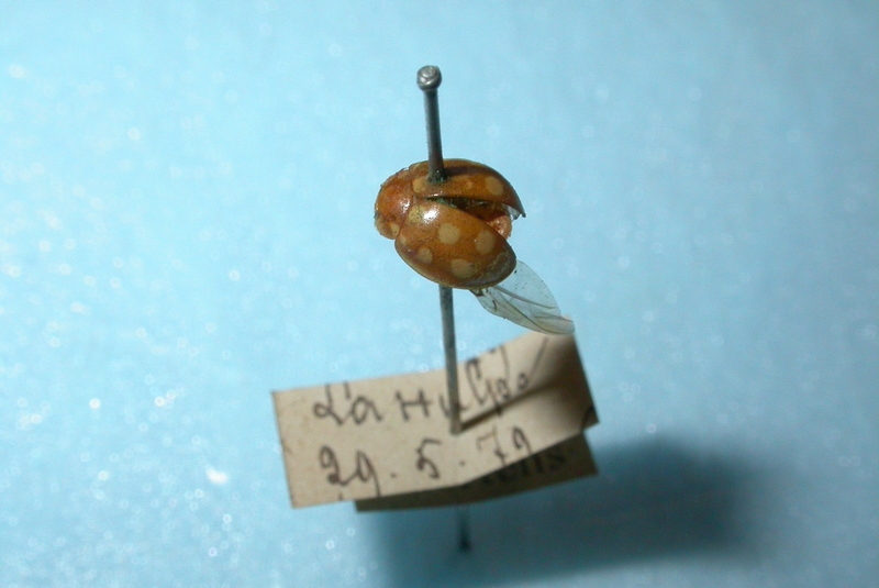 Le nom de cet insecte est trompeur, car chaque élytre possède 6 à 7 taches claires. Il peut donc être facilement confondu avec Calvi 14-guttata, surtout lorsque la tache humérale est absente. Les antennes sont aussi longues que la largeur de la tête chez Calvia 15-guttata, et leur 9ème article est triangulaire. En cas de doute, l'analyse des tegmina mâles est déterminante.