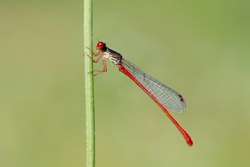 Petite demoiselle presque entièrement rouge ressemblant à Pyrrhosoma nymphula (Nymphe au corps de feu) dont elle se distingue, entre autre, par sa taille plus petite et ses pattes entièrement rouges. L'agrion délicat est présent essentiellement sur la partie sud et ouest de l' Europe, il est en expansion en Belgique et en Wallonie. On peut l'observer en été, principalement de juillet à août et semble rechercher des plans d'eau stagnants de faible profondeur.