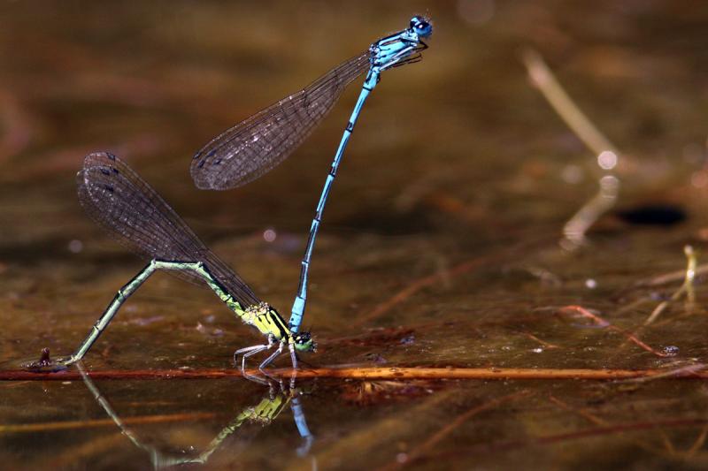 | Ecologie : | L'Agrion jouvencelle est une espèce ubiquiste qui se rencontre dans une grande diversité de biotopes. Les effectifs les plus élevés s'observent sur des plans d'eau plutôt riches en éléments nutritifs et de faible superficie. C. puella colonise aussi bien les étangs récemment créés, dépourvus de plantes aquatiques, que les étangs présentant une végétation flottante et submergée bien développée. L'espèce peut aussi être notée, quoiqu'en faible nombre, le long de ruisseaux, de fossés, de canaux ou de rivières. Sur les grands plans d'eau, elle s'observe surtout le long des rives. Geert De Knijf in Goffart et al. 2006 |