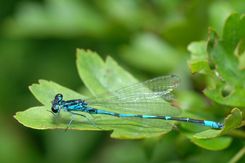 Chez les mâles, la distinction entre les deux espèces se base, entre autre, sur la forme du dessin noir du deuxième segment : un"U" pour Coenagrion puella et un "Y" rattaché par un trait noir à la base, à la jonction entre le deuxième et le troisième segment.