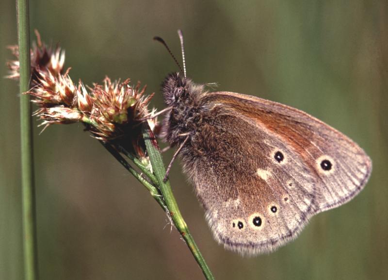 | Ecologie : | L'espèce fréquent les bas-marais aussi bien acides qu'alcalins, les tourbières de transition et les tourbières hautes. Ses plantes-hôtes sont principalement les linaigrettes ( Eriophorum vaginatum, Eriophorum angustifolium, Eriophorum spp.), mais la littérature mentionne aussi Festuca spp., Carex spp., Juncus articulatus, Nardus stricta, Deschampsia cespitosa, Molinia caerulea, peut-être aussi Rhynchospora alba. Les oeufs sont isolés ou alignés sur des graminées. Cycle de vie : L'espèce vole surtout de juin à juillet en 1 génération. Elle hiverne au stade chenille. |