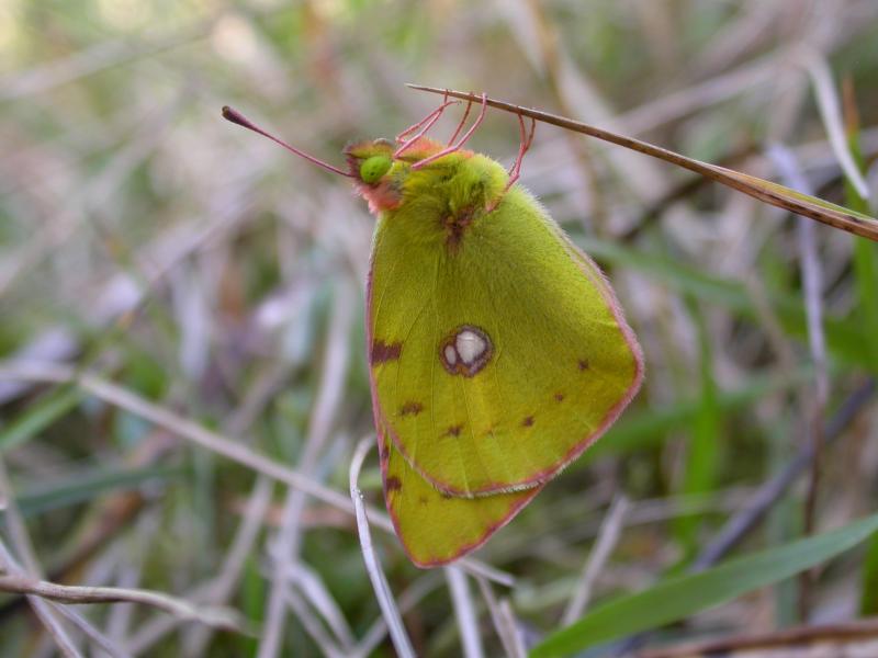 | Ecologie : | L'espèce fréquente les milieux ouverts variés : prés fleuris, friches, champs de trèfles et de luzerne et terrains rudéraux. Des oeufs isolés sont pondus sur diverses Fabacées dont Lotus corniculatus (w)*, Medicago sativa, Melilotus spp., Trifolium spp., Vicia spp., Colutea arborescens, Astragalus glycyphyllos, Securigera varia, Hippocrepis comosa. Cycle de vie : 2 à 3 générations. Colias croceus ne résiste pas au gel de nos hivers, sauf circonstances exceptionnelles. Les premiers migrateurs arrivent du sud (Maghreb, Espagne, sud de la France) à partir du mois de mai pour se reproduire. Les adultes s'observent surtout de juillet à octobre, avec un pic en août. Les papillons qui ont émergé en août-septembre meurent chez nous durant l'automne. Dates extrêmes : 1/5 - 9/11. * ponte observée en Wallonie |