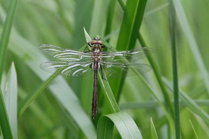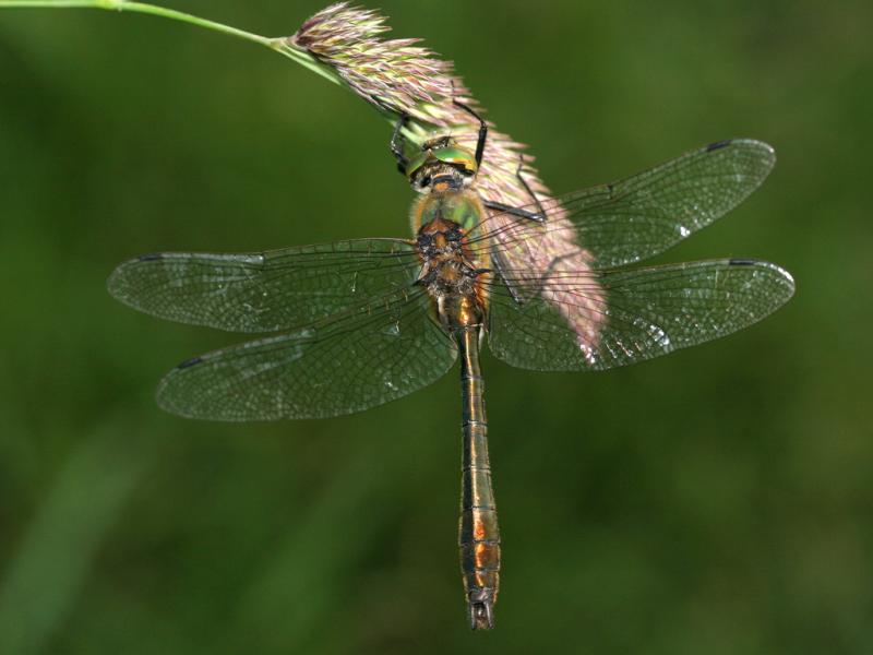 | Ecologie : | Cordulia aenea se rencontre sur des eaux stagnantes très diverses, riches ou moyennement riches en éléments nutritifs : plans d'eau dans des zones marécageuses, bras morts, étangs, piscicultures extensives, pièces d'eau sur sables, « vennen » et lithalses mésotrophes. Elle préfère nettement les plans d'eau présentant des végétations aquatique et émergente bien développées, cette dernière à base de Roseau ( Phragmites australis ) et de laîches ( Carex spp .), entre autres. Des bois ou zones buissonnantes sont généralement présentes à proximité immédiate. La reproduction en eau courante n'a pas été rapportée en Belgique, mais l'espèce est parfois observée en train de chasser au dessus de cours d'eau. Geert De Knijf in Goffart et al. 2006 |