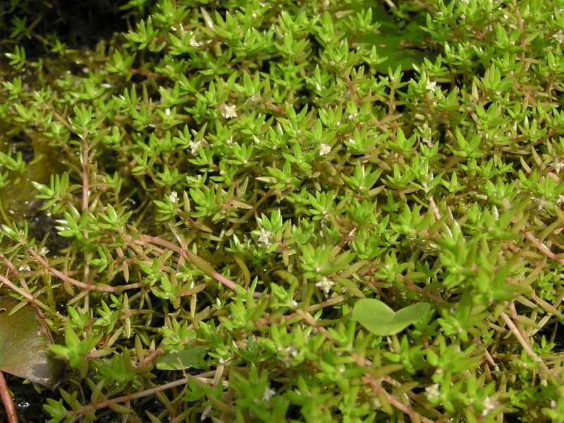 HABITATS - L'espèce fréquente les eaux stagnantes ou à faibles courants des lacs, étangs, fossés, rivières, canaux, marais, zones humides et également des tourbières. Elle colonise les milieux aquatiques depuis les berges jusqu'à 3 mètres de profondeur environ et semble peu exigeante vis-à-vis de la nature du substrat ou des conditions d'éclairement. La crassule des étangs supporte aussi une salinité modérée ce qui lui permet de fréquenter les zones humides côtières. L'espèce se développe aussi bien dans les milieux riches que pauvres en éléments nutritifs. Elle est adaptée à une grande variété de conditions climatiques. Elle supporte bien le gel (jusqu'à -6°C) et la neige, mais également des épisodes de sécheresse. Elle est ainsi capable, contrairement à beaucoup d'autres plantes, d'occuper de manière permanente les milieux aquatiques et de croître en toutes saisons. La crassule des étangs possède aussi la faculté de pousser pendant la nuit ce qui lui permet de conquérir les plans d'eau plus rapidement que les autres plantes.