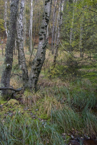 Forêts à caractère boréal, claires et peu élevées, sur sol tourbeux humide et très acide, dominées par le bouleau pubescent, avec quelques intrusions d'essences mésophiles (aulne glutineux, chêne pédonculé, sorbier des oiseleurs). La flore bryophytique, qui est principalement constituée de sphaignes, a un recouvrement pratiquement complet dans les variantes peu dégradées. La flore herbacée comporte une majorité d'espèces « boréales », en particulier [Molinia caerulea], [Vaccinium myrtillus] et, plus rares et quasiment limitées à l'Ardenne, [Vaccinium uliginosum], [Empetrum nigrum] et [Trientalis europaea]. Ces forêts correspondent soit aux termes de colonisation ligneuses de certains bas-marais acides, landes tourbeuses et tourbières bombées à sphaignes, soit à des forêts sur criques de suintements d'eaux très acides (variantes occupant généralement de faibles surfaces, et dans lesquelles [Alnus glutinosa] et [Luzula sylvatica] deviennent plus abondants). Les espèces des tourbières hautes peuvent être bien représentées dans les strates herbacée et mucinale.