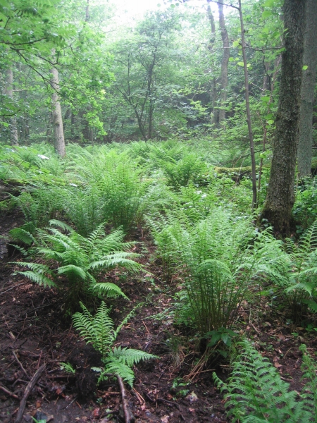 - espèces préférentielles des variantes plus humides : Athyrium filix-femina, Deschampsia cespitosa, Dryopteris carthusiana