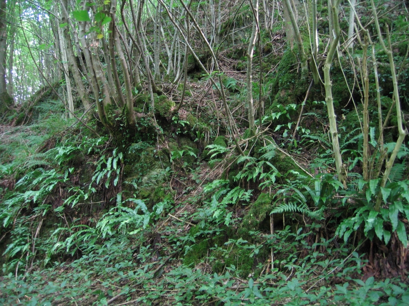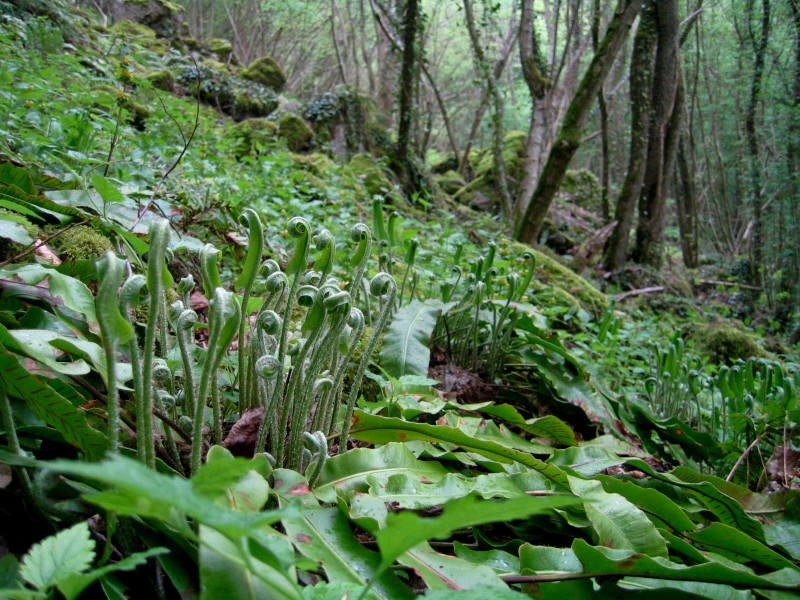 - herbacées : Asplenium scolopendrium, Polystichum aculeatum, Mercurialis perennis, Geranium robertianum, Lamium galeobdolon, Urtica dioica, Polygonatum multiflorum, Arum maculatum, Dryopteris filix-mas