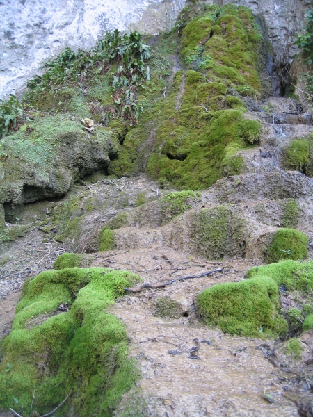 Espèces caractéristiques des formations de tufs : Cratoneuron commutatum, C. filicinum, + diverses bryophytes,