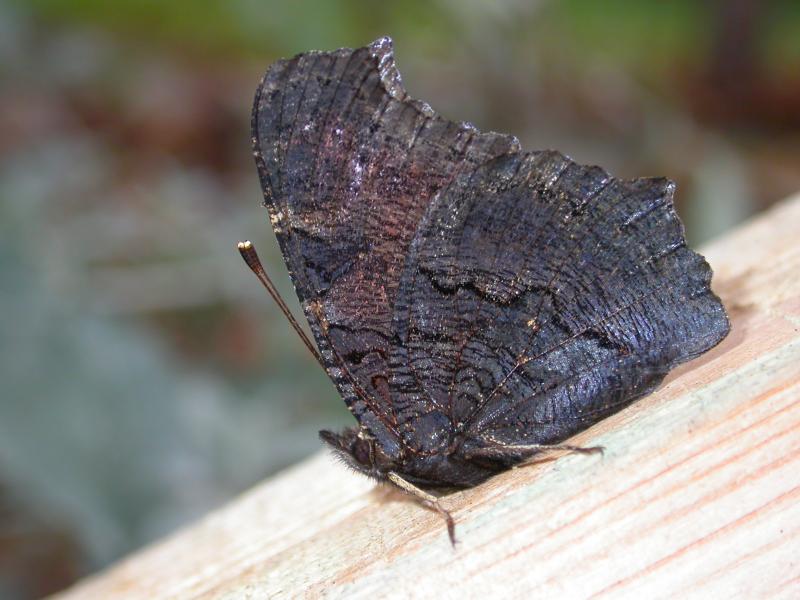 La couleur de fond de ce papillon d'une beauté remarquable est rouge brique et possède de grands ocelles bleus sur chaque aile. Le revers sombre uni contraste fortement avec le dessus coloré.