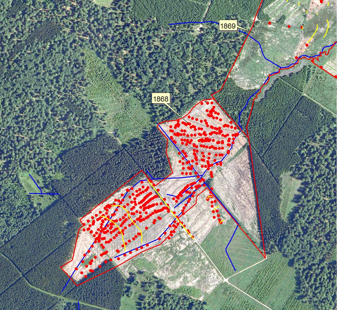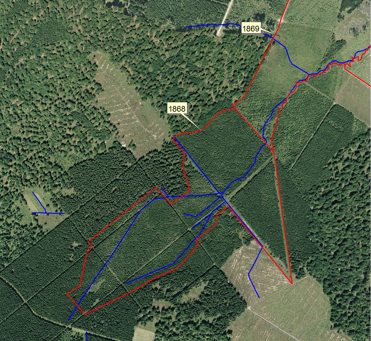 Le site avant le projet (PPNC-1999) - Site draîné avec des régénérations et des plantations d'épicéas. |