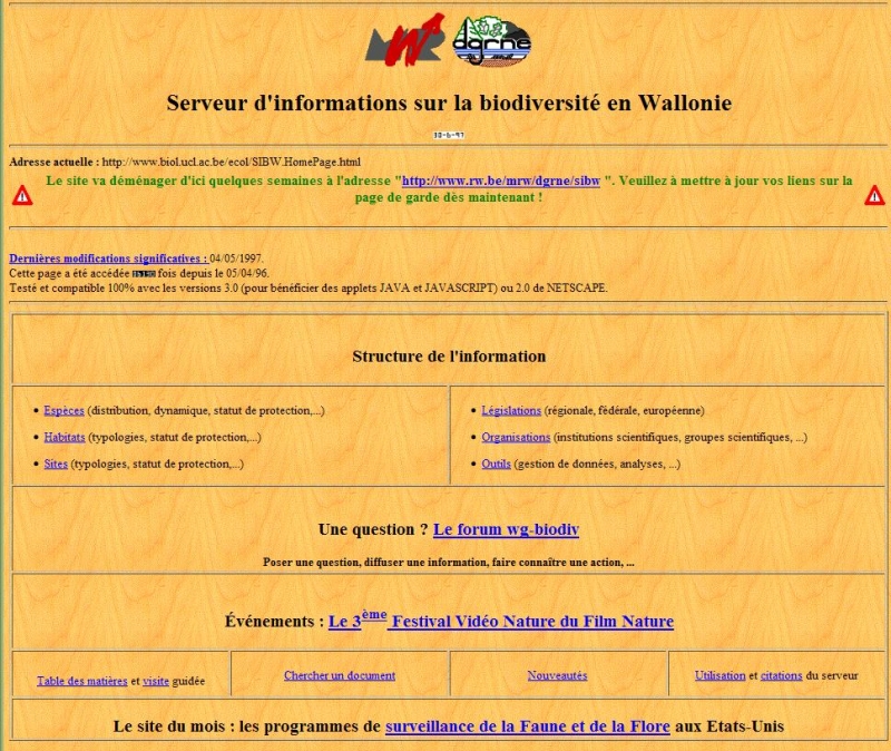 La base de données des Sites de Grand Intérêt Biologique (SGIB), véritable noyau du projet, venait d'être structurée en une base de données interactive (FILEMAKER PRO), et il fallait pouvoir la diffuser le plus largement possible. En détaillant des informations sur les espèces et les biotopes, elle offrait un large potentiel d'usages qui dépassait le cadre strict des informations sur les SGIB. Le site web permettait aussi de valoriser les activités de monitoring et de surveillance de la biodiversité lancées dans le cadre du programme SURWAL soutenu par Catherine Hallet au sein de la cellule Etat de l'Environnement Wallon à la DGARNE.