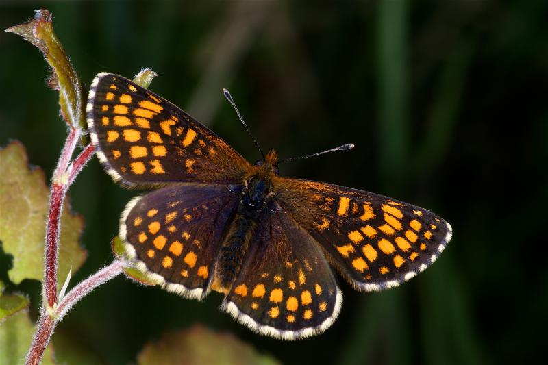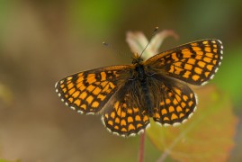 | Ecologie : | L'espèce fréquente les forêts feuillues claires et sèches (chênaies, chênaies-charmaies, chênaies-boulaies, boulaies...), clairières herbeuses et prairies maigres jouxtant ce type de boisement, parfois prairies marécageuses. Les femelles pondent surtout sur Melampyrum pratense (w)* , Plantago lanceolata (w)*, Veronica chamaedrys (w)*, Veronica officinalis, V. montana, Digitalis purpurea, D. lutea, Teucrium scorodonia, Linaria vulgaris... Les oeufs sont pondus en petits groupes ou en plaques sous les feuilles, à proximité du sol. Cycle de vie : 1 génération. L'espèce vole de mi-mai à juillet, avec un pic en juin. Elle hiverne au stade chenille, après la deuxième mue. * pontes observées en Wallonie |