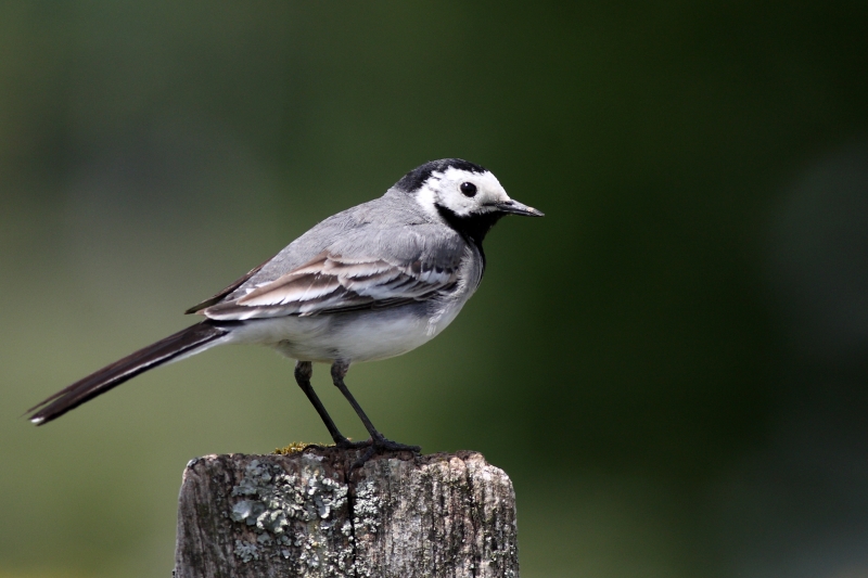 La Bergeronnette grise a une longue queue qu'elle hoche en permanence. Son plumage est noir, blanc et gris et ne montre jamais de jaune.