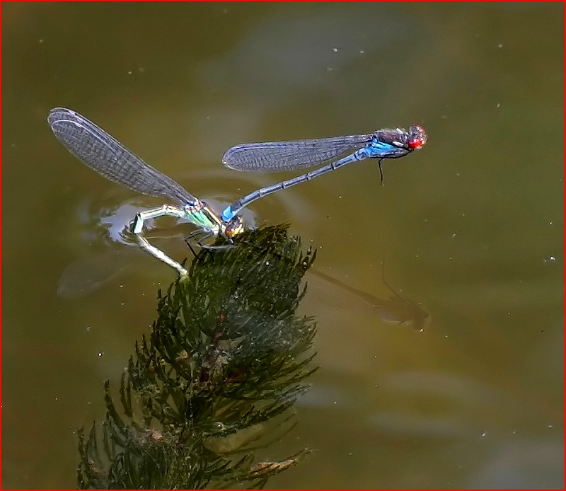 Naïade aux yeux rouges (Erythromma najas) Ponte.