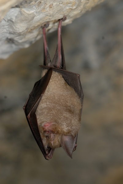 | Ecologie : | Régime alimentaire : Principalement des lépidoptères hétérocères (Noctuidae, Geometridae) mais aussi des diptères (surtout Tipulidae) et coléoptères (Scaraboidea : Melolontha, Geotrupes, Aphodius) et quelques neuroptères (Hemerobiidae, Chrysopidae) ; quelques Arachnidae et Syrphidae ; trichoptères, hyménoptères Ichneumonidae (d'après Jones 1990, Pir 1994, Beck 1995) Comportement de recherche de nourriture : chasse au perchoir (fly-catching, perch-hunting) et glanage au sol Habitat de reproduction : Au cours de la bonne saison, les individus cherchent des gîtes au micro-climat chaud (> à 25°C), sombres, sans courant d'air et leur assurant une quiétude parfaite. Les femelles gravides s'y rassemblent, les mâles adultes s'y abritent isolément. A notre latitude, on ne connaît quasi pas de gîte de reproduction ou d'estivage sous terre. Les combles des bâtiments (fermes, églises, ...) sont colonisés. Le grand rhinolophe a besoin de gîtes volumineux (plus de 100 m3) qu'il peut atteindre en vol direct et dans lesquels il peut évoluer facilement. Il peut parfois occuper des caves chauffées. Terrain de chasse : Il chasse dans les boisements clairs, le long des falaises, des alignements d'arbres, des lisières des forêts de feuillus ou des grandes haies qui délimitent les pâtures, aux bords des eaux stagnantes et courantes ou dans les parcs et jardins. Habitat d'hivernage : C'est une espèce frileuse. Elle va établir ses quartiers d'hiver dans des sites souterrains naturels (grottes) ou artificiels (mines, galeries, glacières, tunnels, celliers, caves) où la température ambiante est stable et se situe entre 7 et 11°C. Le degré hygrométrique doit être proche de la saturation. Elle est extrêmement sensible aux dérangements. L'accès au gîte doit se faire en vol. Sa fidélité au gîte est très grande. |