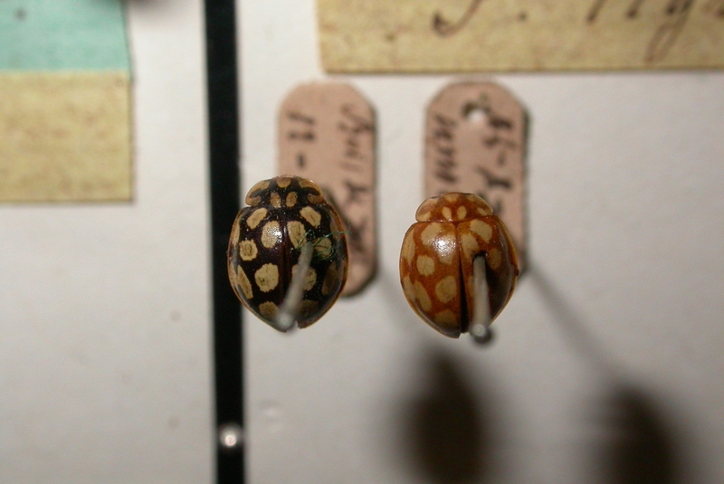 2 spécimens de Coccinelle des Aulnes (Sospita vigintiguttata), musée d'histoire naturelle de Bruxelles