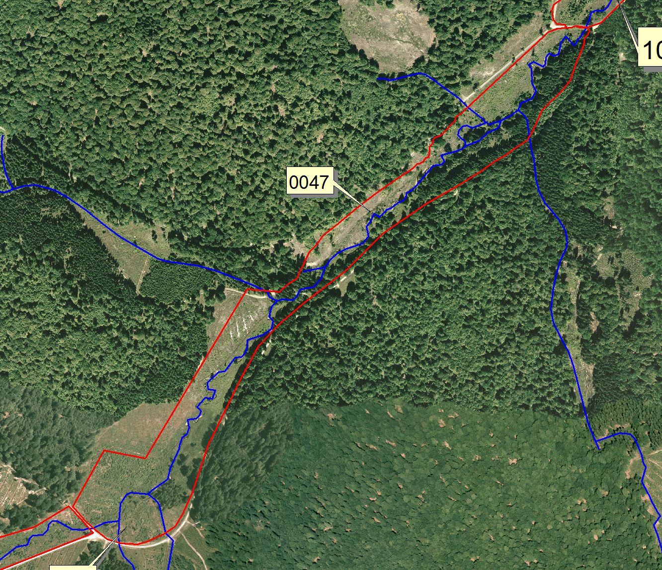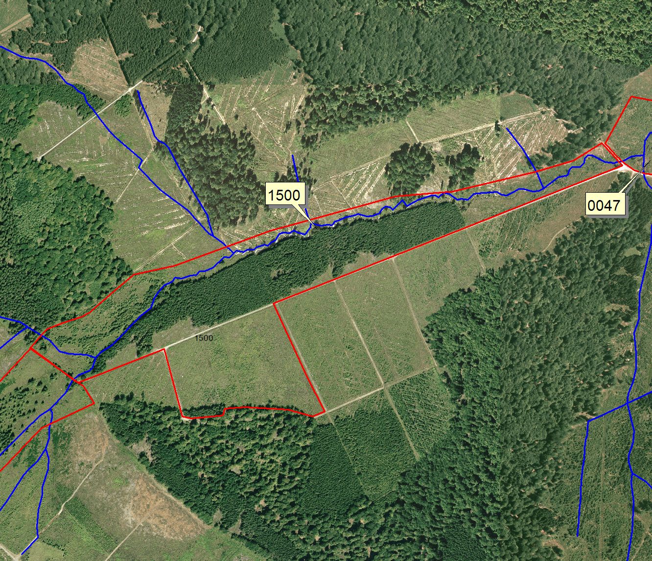 Carte google map post travaux de creusement de mares et d'élimination de plantations et de regénération d'épicéas
